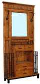 Innovative and versatile item with wrought item detailing that offers drawer, vertical, shelf and hanging storage.
