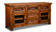 Such lovely and intricate details, solid wood, gorgeous accents and hand carvings make this buffet an amazing conversation piece at an amazing price. The first time I saw it, it made me think of the ancient drawings on the sides of old caves. If you look carefully you can almost see the shapes and symbols that were precursors to writing. And just like that, it made me think of a legacy; what we create, nourish, cultivate and eventually ... leave behind to benefit others. Anchored by a beautiful wrought iron base, this Mexican buffet / server / TV stand will be equally at home in a condo near the beach in Tulum or Sayulita ... in a home in Merida, or a hill house overlooking Cabo San Lucas. Available in two gorgeous, textured beautiful finishes.