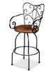 Gorgeous hand-forged bar or counter stool. It has lovely arms and it swivels. I find something so elegant in it -- can't decide if it's because it makes me think of a bustle skirt like those worn on "The Gilded Age" or because of the lovely patina of the finish. The back is absolutely beautiful, hammered finish applied by hand. Available in 24" or 30" seat. Lovely brown faux leather seat.